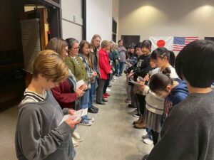 さよならディナーでは、皆さんからごあいさつをいただき、プレゼントもいただき、感謝のお礼に歌のプレゼント「CountryRoad」を歌い、スピーチをし、そして皆で「会津磐梯山」を踊りました!なんとみずきちゃんは「笛」を、はると君は「太鼓」を担当!素晴らしいさよならディナーになりました。