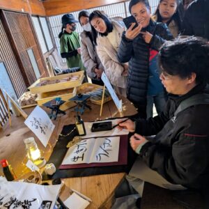 初市が初めての皆さんと小田付通りのイベントやお店を訪問。お習字もさせてもらいました
