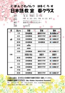 4がつ から 春(はる)の 日本語教室(にほんごきょうしつ)が はじまります!